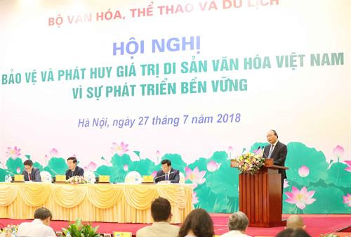 Ngày 27-7-2018, tại Hà Nội, đã diễn ra Hội nghị Bảo vệ và phát huy giá trị di sản văn hóa Việt Nam vì sự phát triển bền vững. Ủy viên Bộ Chính trị, Thủ tướng Chính phủ Nguyễn Xuân Phúc đã tham dự, chủ trì và phát biểu tại Hội nghị. Hội nghị đánh giá tình hình di sản thế giới tại Việt Nam và công tác bảo vệ, phát huy giá trị di sản văn hóa ở Việt Nam vì sự phát triển bền vững.