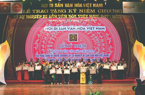 Lễ trao tặng Kỷ niệm chương Vì sự nghiệp di sản văn hóa Việt Nam của Hội Di sản Văn hóa Việt Nam được tổ chức vào ngày Di sản Văn hóa Việt Nam 23-11-2018. Đây là lần đầu tiên Hội Di sản Văn hóa Việt Nam xét và trao tặng Kỷ niệm chương cho những người có thành tích xuất sắc trong sự nghiệp bảo tồn và phát huy giá trị của di sản văn hoá Việt Nam và những người có đóng góp xuất sắc vào việc xây dựng và phát triển Hội Di sản Văn hóa Việt Nam.