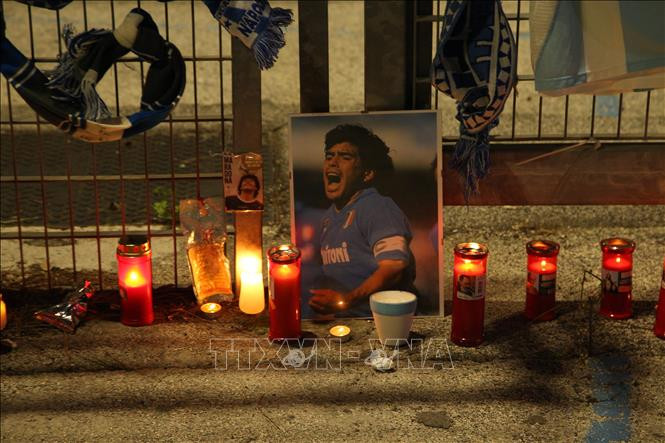 Người hâm mộ thắp nến tưởng niệm huyền thoại bóng đá Diego Maradona, tại Naples, Italy ngày 25/11/2020. Ảnh: AFP/TTXVN