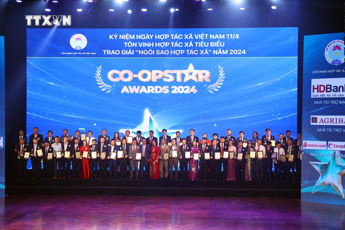 Tối 11/4, tại Hà Nội, Liên minh Hợp tác xã Việt Nam đã tổ chức Lễ tôn vinh Hợp tác xã tiêu biểu và trao giải Ngôi sao Hợp tác xã (Co-op Star Awards) năm 2024 cho 100 hợp tác xã trên phạm vi cả nước. Đây là hoạt động nằm trong chuỗi sự kiện Tháng Hành động vì Hợp tác xã Việt Nam do hệ thống Liên minh Hợp tác xã Việt Nam phát động và triển khai thực hiện chào mừng Ngày Hợp tác xã Việt Nam 11/4.