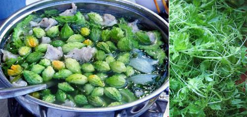 Lẩu lá khổ qua rừng nếu được nấu bằng cá trào cững (giống cá lóc con) thì hợp khẩu vị hơn; nếu không thì nấu với sườn non, tôm khô cũng được. Lá khổ qua được nhặt, rửa sạch để ráo trên đĩa, nồi nước đang sôi chỉ cần nhúng một nắm lá vào lẩu vớt với ra ngay dùng liền, thì mới cảm được vị ngon đặc trưng.