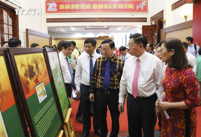 Ngay sau Lễ Khai trương Trung tâm Báo chí, Bí thư Trung ương Đảng, Trưởng ban Tuyên giáo Trung ương Nguyễn Trọng Nghĩa, Phó Thủ tướng Chính phủ Trần Hồng Hà cùng lãnh đạo Bộ Thông tin và Truyền thông, lãnh đạo tỉnh Điện Biên ký phát hành Bộ tem Kỷ niệm 70 năm Chiến thắng Điện Biên Phủ; tham quan trưng bày 33 số báo Quân đội Nhân dân xuất bản tại mặt trận Điện Biên Phủ; triển lãm ảnh, video “Việt Nam hạnh phúc - Happy Vietnam 2024”.