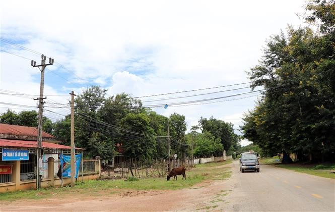 Cơ sở hạ tầng như điện, đường giao thông được đầu tư đồng bộ, góp phần thúc đẩy xã vùng biên Mô Rai vươn mình hòa nhịp cùng với các địa phương khác trong tỉnh Kon Tum. Ảnh: Cao Nguyên-TTXVN