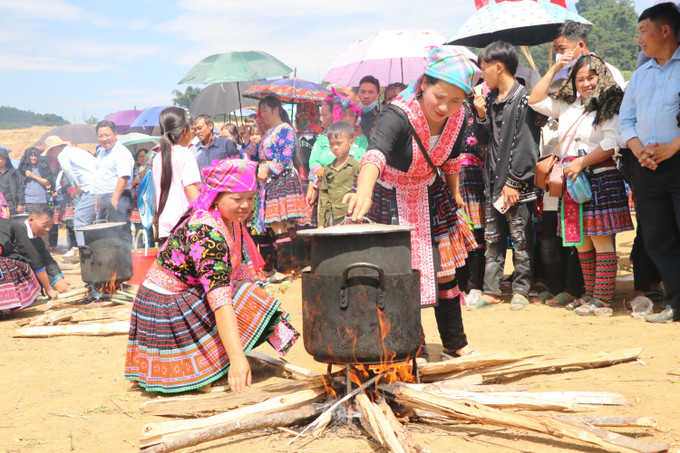 Ngay từ sáng sớm, người dân và du khách đã đổ về xã Tả Lèng để vui hội. Các cô gái Mông xinh xắn trong trang phục truyền thống sặc sỡ, đính trang sức bạc lấp lánh khiến cho nhiều du khách thích thú.