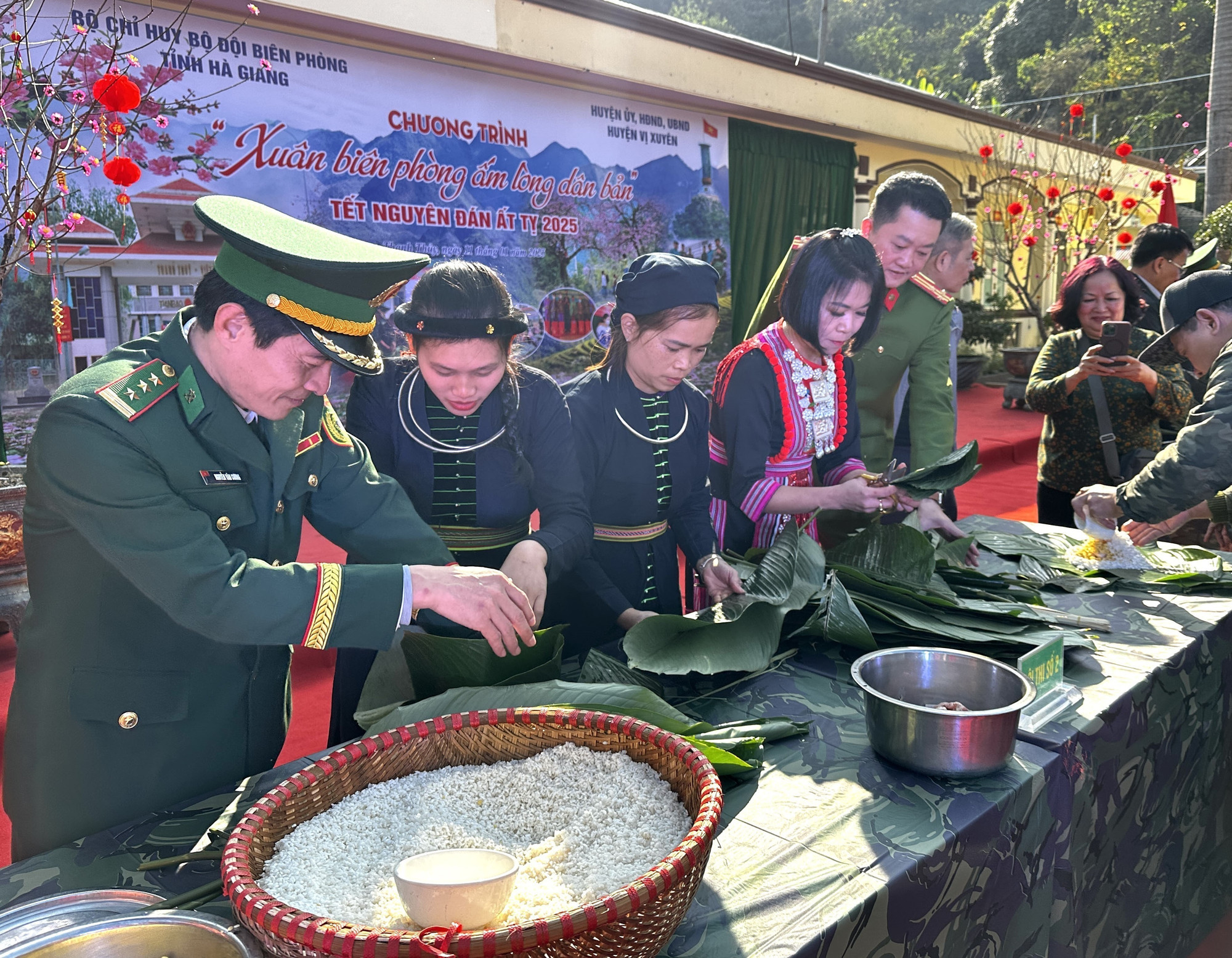Trong cái lạnh ngày đông, không khí những ngày chuẩn bị đón Tết Nguyên đán Ất Tỵ 2025 sắp đến, nơi miền biên giới huyện Vị Xuyên, hàng trăm người dân đã tụ hội về Đồn Biên phòng cửa khẩu quốc tế Thanh Thủy để cùng tham gia nhiều hoạt động sôi nổi của chương trình “Xuân biên phòng ấm lòng dân bản” như thi gói bánh chưng, kéo co, đẩy gậy.