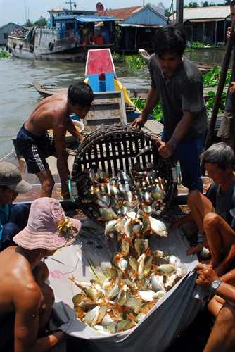 | Thương lái thu mua cá. |