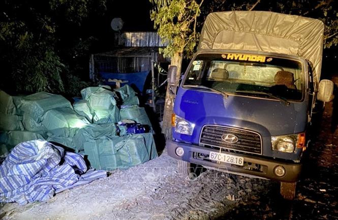 Cụ thể, khoảng 4 giờ ngày 2/1, Tổ công tác thuộc Đội Cảnh sát kinh tế Công an thành phố Châu Đốc phối hợp cùng Công an phường Núi Sam và Công an xã Vĩnh Tế, tổ chức tuần tra chống buôn lậu trên địa bàn. Khi đến khu vực thuộc tổ 1, ấp Bà Bài, xã Vĩnh Tế (thành phố Châu Đốc, tỉnh An Giang) phát hiện một nhóm đối tượng đang bốc hàng từ điểm tập kết lên xe tải biển kiểm soát 67C - 128.16 có biểu hiện nghi vấn hàng hóa nhập lậu, nên tiếp cận kiểm tra.