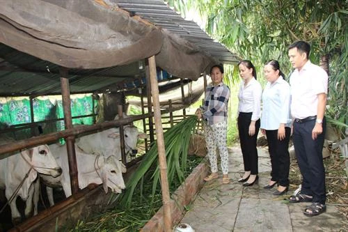 | Chị Lê Thị Bé Chín ở huyện Chợ Mới (An Giang) nhờ vốn tín dụng chính sách nuôi bò phát triển kinh tế gia đình. Ảnh: baoangiang.com.vn |