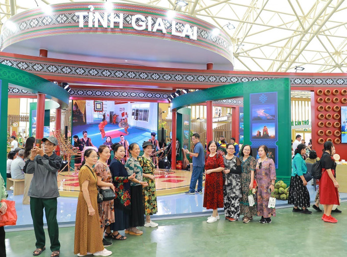 Gian hàng trưng bày, quảng bá sản phẩm đặc trưng, tiêu biểu của tỉnh Gia Lai nằm trong phân khu "Thu đất Việt - Sắc nước hương thu" tại Hội chợ Mùa thu 2025 đang diễn ra tại Trung tâm triển lãm Quốc gia (Đông Anh, Hà Nội) mang đến nhiều ấn tượng cho người dân và du khách bởi các sản vật địa phương đa dạng cùng với bản sắc văn hoá độc đáo.