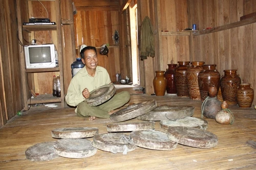 Anh Đinh Nan, làng Kon Túc nhất quyết giữ bộ cồng chiêng do cha, ông để lại.