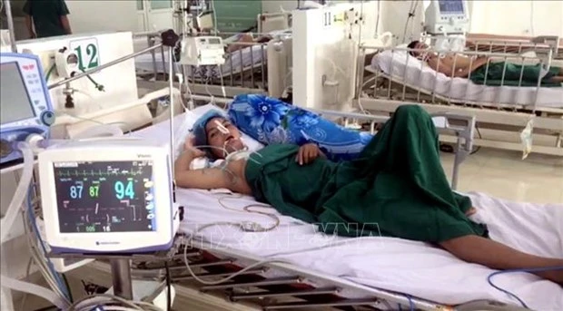 Các bệnh nhân bị ngộ độc Botulinum đang được điều trị tại Khoa Hồi sức tích cực và Chống độc, Bệnh viện Đa khoa tỉnh Kon Tum. Ảnh: Khoa Chương - TTXVN