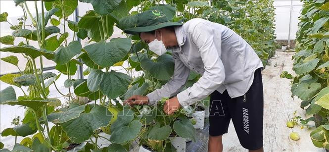 Mô hình trồng dưa lưới ứng dụng công nghệ cao nhà màng tại xã Long Tân, huyện Đất Đỏ. Ảnh: Hoàng Nhị - TTXVN