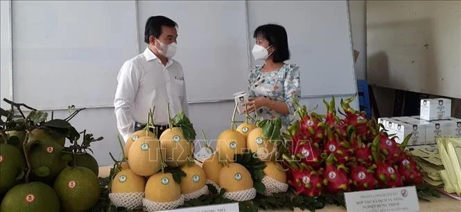 Các sản phẩm nông nghiệp ứng dụng công nghệ cao được trưng bày tại hội thảo xúc tiến đầu tư trong lĩnh vực nông nghiệp trên địa bàn tỉnh Bà Rịa-Vũng Tàu. Ảnh: Hoàng Nhị - TTXVN