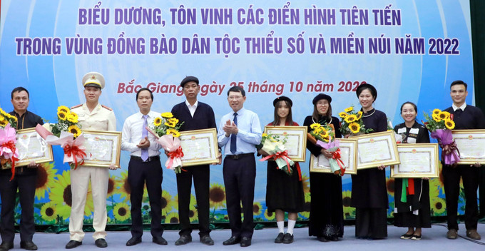 Ngày 25/10, Ban Dân tộc tỉnh Bắc Giang tổ chức biểu dương 45 cá nhân điển hình tiên tiến trong đồng bào dân tộc thiểu số, miền núi năm 2022. Đây là những cá nhân có thành tích xuất sắc trong phong trào thi đua yêu nước năm 2022 trên các lĩnh vực, ngành nghề, trong lao động sản xuất, học tập, nghiên cứu, làm kinh tế giỏi...