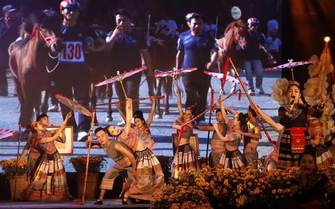 Biểu diễn nghệ thuật chào mừng tại lễ khai mạc. Ảnh: Quốc Khánh - TTXVN