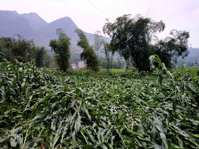 Trên địa bàn huyện Pác Nặm, giông lốc còn làm tốc mái 9 chuồng trại chăn nuôi, một cột điện bị gãy đổ.
