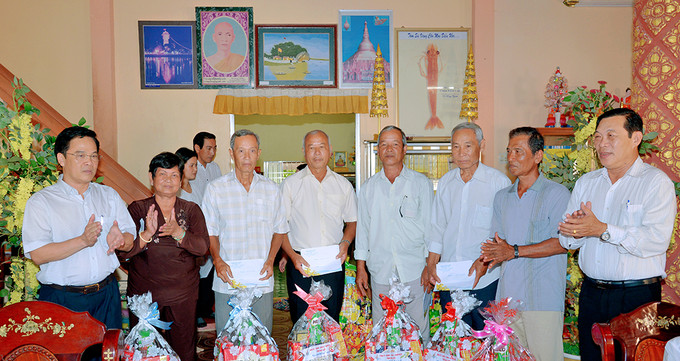 Bên cạnh việc chú trọng đầu tư phát triển cơ sở hạ tầng vùng đồng bào dân tộc thiểu số, các cấp, các ngành của tỉnh Bạc Liêu thường xuyên tổ chức đoàn công tác đến thăm, tặng quà chư tăng, hộ gia đình chính sách, tiêu biểu nhân dịp lễ, Tết cổ truyền của đồng bào dân tộc Khmer. Ảnh: Thanh Nhã