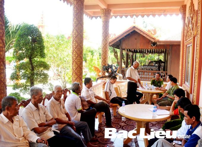 Công an TP. Bạc Liêu tuyên truyền công tác đảm bảo an ninh trật tự cho đồng bào Khmer xã Vĩnh Trạch Đông (TP. Bạc Liêu). Ảnh:baobaclieu.vn