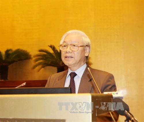 | Tổng Bí thư Nguyễn Phú Trọng phát biểu tại Hội nghị. Ảnh: Trí Dũng – TTXVN |