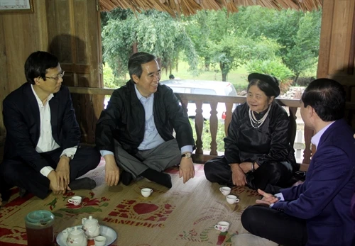 | Đồng chí Nguyễn Văn Bình thăm, chúc Tết, tặng quà cho gia đình ông Hoàng Trung Dân, thôn Tân Lập, xã Tân Trào. Ảnh: Quang Cường – TTXVN. |