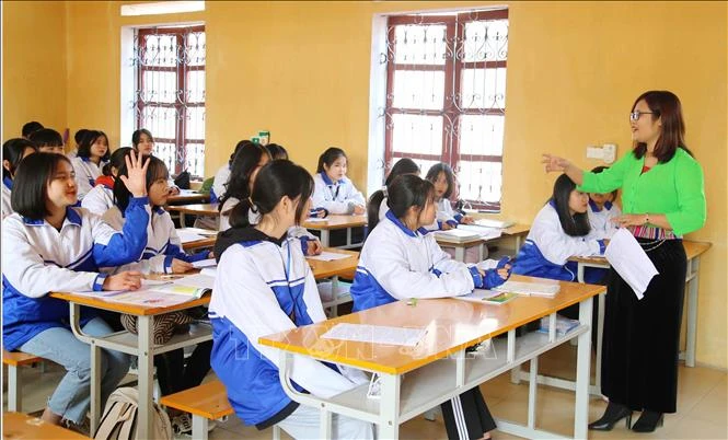 Cô giáo Hà Ánh Phượng - Gương mặt trẻ Việt Nam tiêu biểu năm 2020 trong một tiết dạy môn Tiếng Anh. Ảnh: Trung Kiên - TTXVN