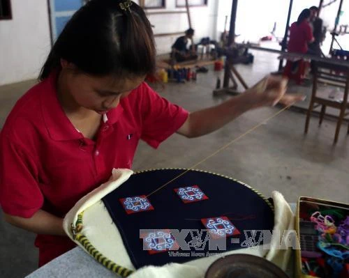 | Hợp tác xã làng nghề dệt thổ cẩm K’Long, xã Hiệp An, huyện Ðức Trọng (Lâm Đồng) tạo việc làm ổn định bào dân tộc thiểu số K’Ho. Ảnh: Vũ Sinh - TTXVN |