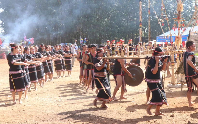 Diễn tấu cồng chiêng là nét đẹp văn hóa của người dân tộc thiểu số tại Tây Nguyên. Ảnh: Hồng Điệp - TTXVN