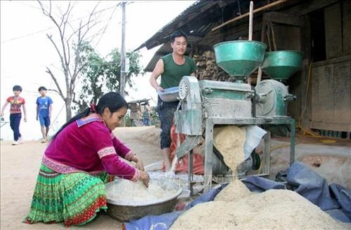 | Điện về bản, hộ anh Giàng A Súa ở bản Nậm Vạc 1, xã Nậm Ban, huyện Nậm Nhùn (Lai Châu) đã khởi động được máy sát. Ảnh: Việt Hoàng - TTXVN |