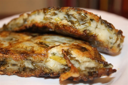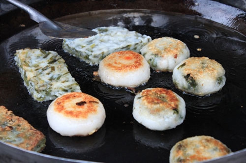 Ngoài loại bánh có nhân, loại bánh hẹ không nhân cũng hấp dẫn người ăn. Lá hẹ cắt khúc, trộn chung với bột gạo, đem hấp chín và chiên giòn.