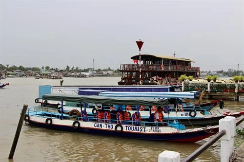 | Các tàu, thuyền du lịch phục vụ khách tham quan trên sông và chợ nổi Cái Răng đã neo đậu an toàn tại bến Ninh Kiều. Ảnh: Thanh Sang-TTXVN |