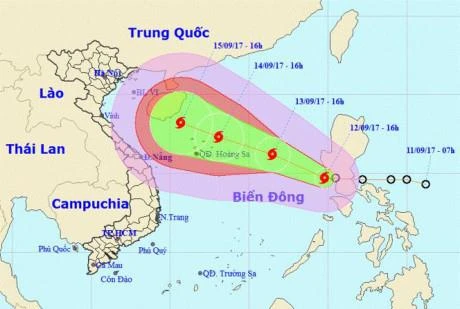Dự báo trong 24 giờ tới, bão di chuyển theo hướng Tây Tây Bắc, mỗi giờ đi được 15-20 km và mạnh lên. Đến 7 giờ ngày 14/9, vị trí tâm bão ở vào khoảng 16,3 độ Vĩ Bắc; 113,2 độ Kinh Đông, cách quần đảo Hoàng Sa khoảng 140 km về phía Đông Đông Nam. Sức gió mạnh nhất vùng gần tâm bão mạnh cấp 11 (100-115 km/giờ), giật cấp 14.