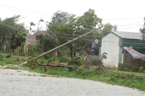 | Nhiều cột điện bị bão giật gãy đổ. Ảnh: Phan Quân - Công Tường/TTXVN |