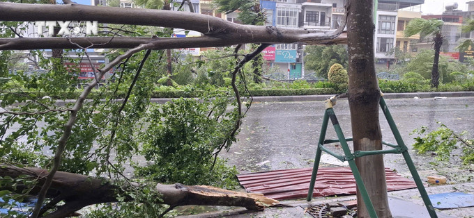 Bão số 3 cũng quật đổ nhiều cây xanh ở thành phố Hạ Long, nhiều mái tôn của nhà dân, công sở bị thổi bay. Trên các tuyến đường nhiều cây xanh bị đổ gãy ra đường nên không thể đi lại. Người dân được khuyến cáo ở trong nhà để đảm bảo an toàn.