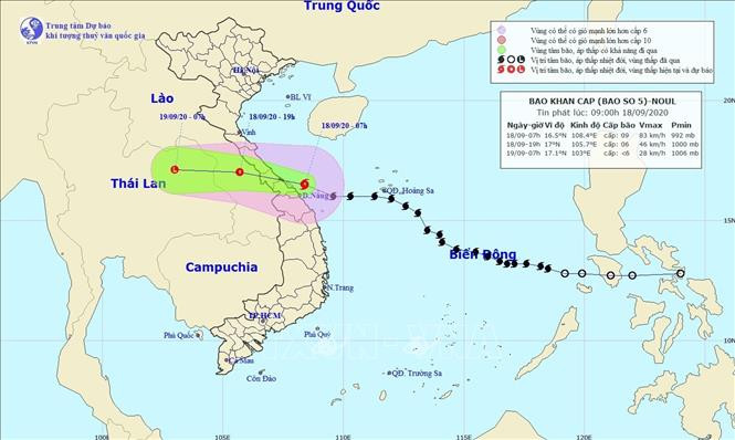 Bản đồ đường đi của Bão số 5. Ảnh: TTXVN phát