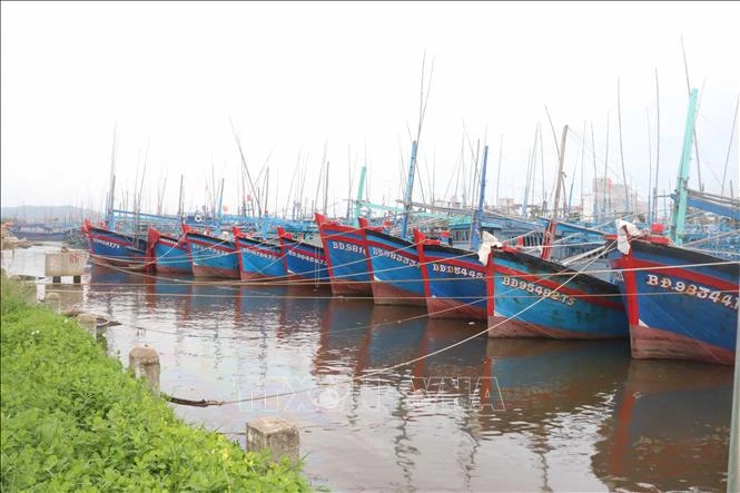 Hơn 1.000 tàu thuyền đã neo đậu trong khu vực neo đậu tàu thuyền phường Tam Quan Bắc, thị xã Hoài Nhơn. Ảnh: Phạm Kha - TTXVN.
