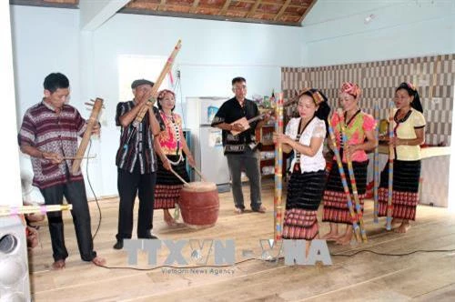 | Một buổi tập của Câu lạc bộ nghệ thuật dân ca Thái bản Cằng. Ảnh: Tá Chuyên – TTXVN |