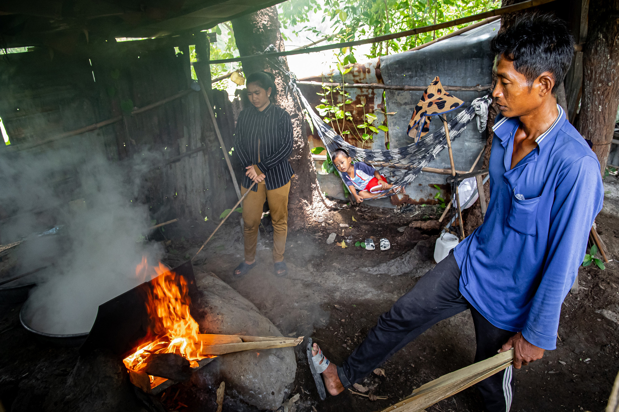 Xong công đoạn lấy nước thốt nốt đầy vất vả và nguy hiểm, công đoạn nấu đường cũng không kém gian nan. Nước lấy xong phải được nấu ngay, để lâu sẽ bị chua, vì vậy, người dân phải xây lò nấu đường gần nơi lấy nước để thuận tiện.