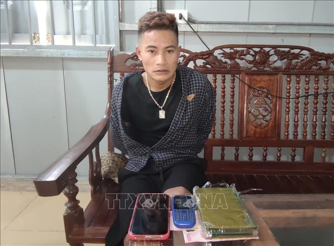 Đối tượng Lò Văn Hà cùng tang vật bị bắt trong chuyên án 921D. Ảnh: TTXVN phát
