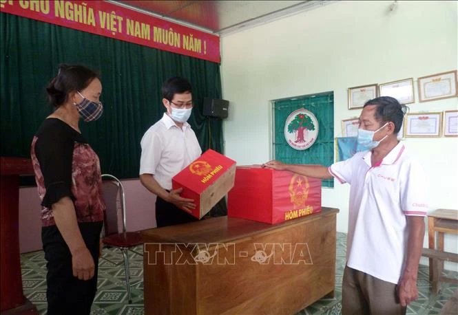 Cán bộ xã Trung Yên, huyện Sơn Dương (Tuyên Quang) kiểm tra công tác chuẩn bị cho ngày bầu cử tại thôn Đồng Mà, xã Trung Yên. Ảnh: Vũ Quang – TTXVN