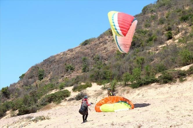 Khu vực luyện tập dành cho người mới tập chơi dù lượn tại Hòn Hồng thuộc địa phận xã Hòa Thắng, huyện Bắc Bình, Bình Thuận. Ảnh: Nguyễn Thanh - TTXVN