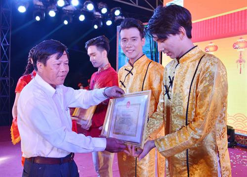 | Trao giải nhất, nhì, ba phần trình diễn trang phục. Ảnh: Hoài Thu/TTXVN |