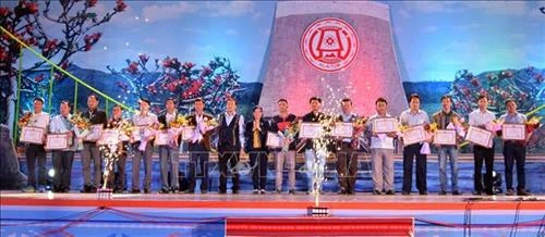 | Đêm bế mạc với chủ đề nghệ thuật "Lời hẹn miền thổ cẩm" đã kết thúc Tuần Văn hóa- Du lịch Kon Tum lần thứ 4 năm 2018 tràn ngập tiếng cồng chiêng và nhịp xoang truyền thống mang đặc trưng của đại ngàn, linh hồn của không gian văn hóa cồng chiêng Tây Nguyên. Trong ảnh: Chủ tịch Ủy ban nhân dân tỉnh Kon Tum tặng bằng khen cho 17 đoàn nghệ nhân, nghệ sỹ. Ảnh: Quang Thái- TTXVN |