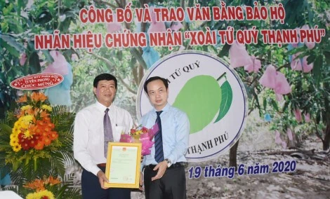 Chiều 20/6, Sở Khoa học và Công nghệ tỉnh Bến Tre phối hợp cùng UBND huyện Thạnh Phú (Bến Tre) tổ chức Lễ công bố và trao văn bằng bảo hộ nhãn hiệu chứng nhận "Xoài tứ quý Thạnh Phú".
