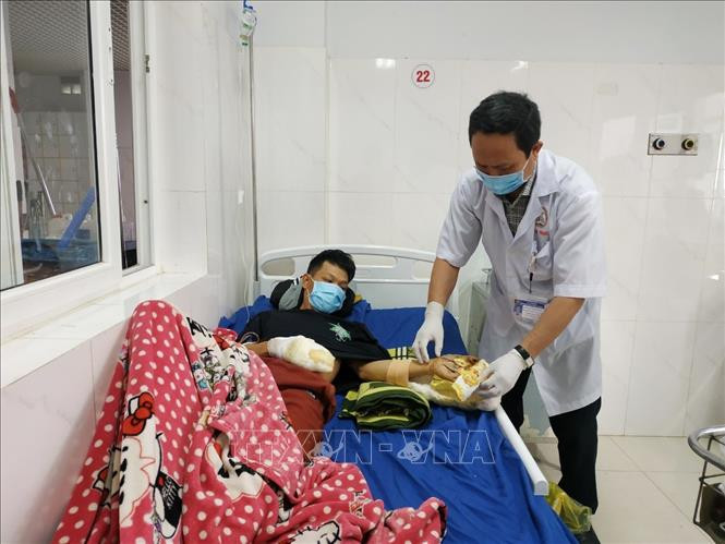 Bác sĩ kiểm tra vết thương cho bệnh nhân bị tai nạn pháo nổ. Ảnh: Tuấn Anh - TTXVN