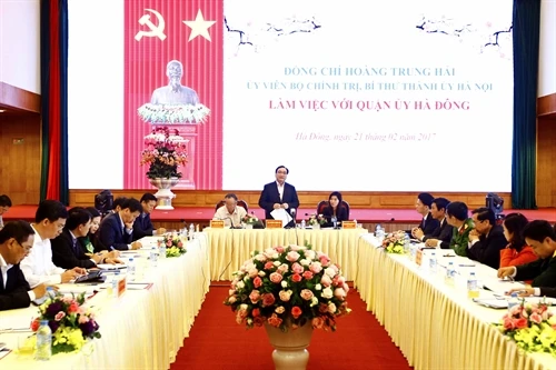 Tại buổi làm việc, đồng chí Hoàng Trung Hải đặc biệt lưu ý công tác cấp giấy chứng nhận quyền sử dụng đất ở và cải cách thủ tục hành chính tại quận Hà Đông.
