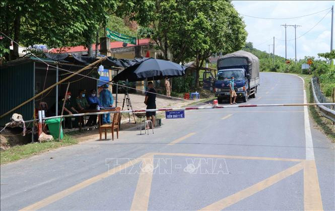 Chốt kiểm soát dịch bệnh COVID -19 Lai Hà trên quốc lộ 12 giáp ranh với thị xã Mường Lay, tỉnh Điện Biên. Ảnh: Nguyễn Oanh-TTXVN.