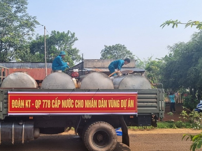 Lực lượng chức năng hỗ trợ người dân tại xã biên giới Bù Gia Mập , huyện Bù Gia Mập (Bình Phước) nước sinh hoạt trong mùa nắng nóng. Ảnh: K GỬIH -TTXVN