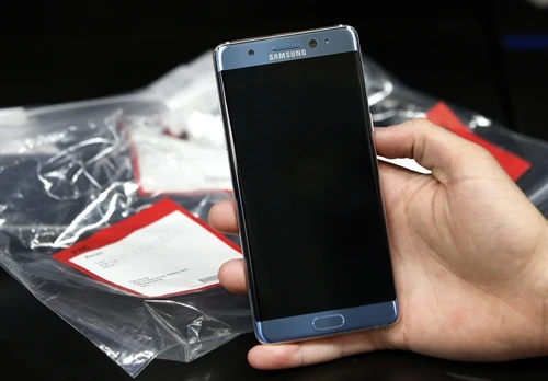 | Điện thoại Galaxy Note 7 của Hãng Samsung bị thu hồi tại Orem, Utah, Mỹ ngày 15/9. AFP/TTXVN |