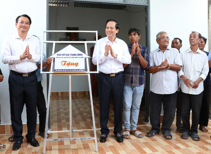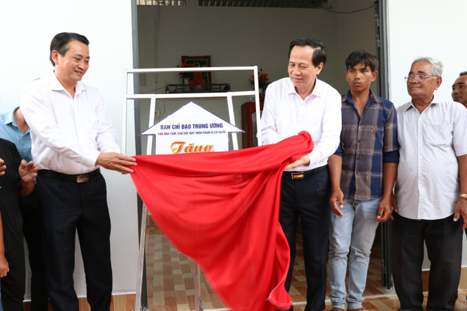 Cụ thể, Đoàn đã trao nhà cho gia đình ông Thạch Danh và ông Trần Đặng, cùng ở ấp Hòa Lạc A, xã Lương Hòa, huyện Châu Thành. Bộ trưởng Đào Ngọc Dung mong rằng, trong điều kiện sống mới, các hộ dân sẽ “an cư, lạc nghiệp”, tích cực lao động, sản xuất, phát triển kinh tế gia đình, từng bước nâng cao mức sống.