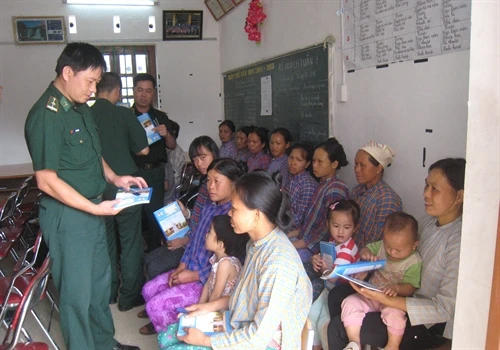 | Người dân xã Cải Viên (Hà Quảng) tham gia lớp học xóa mù chữ do Đồn Biên phòng Lũng Nặm phối hợp với địa phương tổ chức. |
